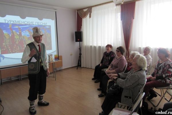 27 февраля в помещении Комплексного Центра социального обслуживания населения сотрудники отдела обслуживания читателей Центральной библиотеки (ул. Маршала Жукова, 10) в рамках литературно-музыкальной гостиной "В кругу друзей" организовали фольклорное путешествие «Песни разных народов». В песенное путешествие присутствующие отправились из России, потом посетили Башкирию ,Татарстан и Киргизию. Побывали музыкальные туристы и за рубежом: в Туркмении и на Украине, в Японии, Финляндии, на Кубе и в других странах.