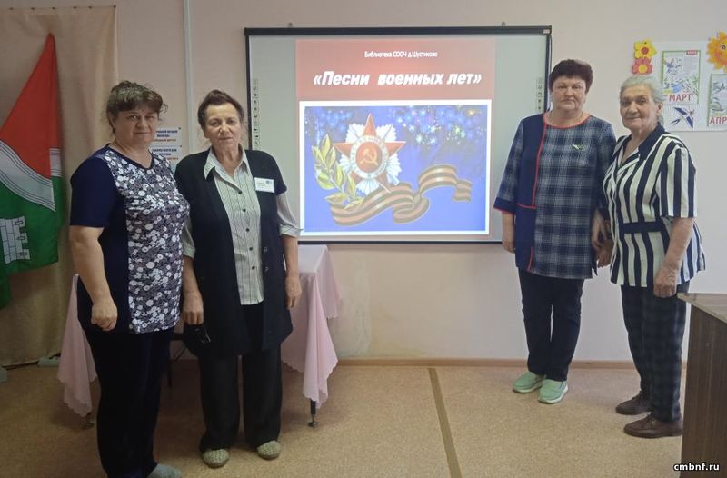 В преддверии праздника Великой Победы библиотекарь сельского отдела обслуживания читателей д. Шустиково Оксана Аксенова пригласила читателей в музыкальную гостиную под названием «Песни военных лет».