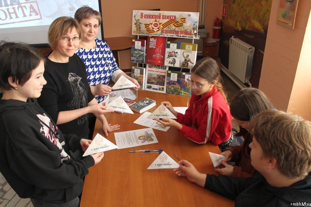 Организаторы мероприятия познакомили собравшихся с историей солдатских писем, показали видеоролик «Письмо с войны», научили складывать письма-треугольники, которые ребята самостоятельно подписали для последующей передачи ветеранам, труженикам тыла, детям войны со словами искренней благодарности за победу.