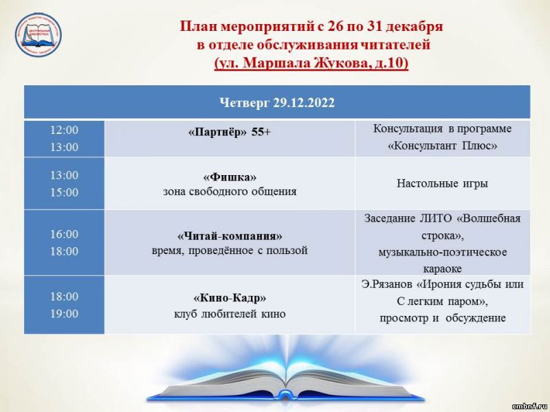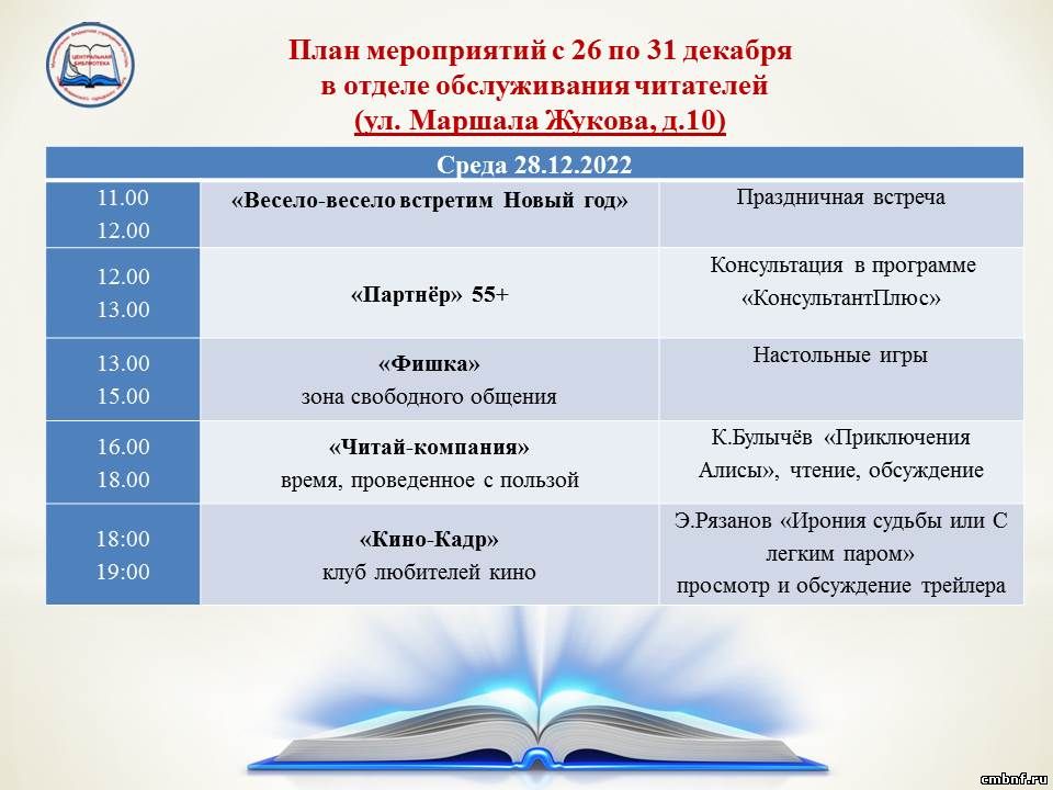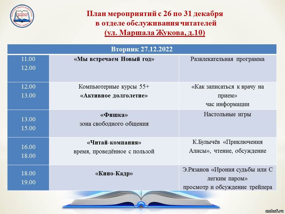 План мероприятий с 26 по 31 декабря
