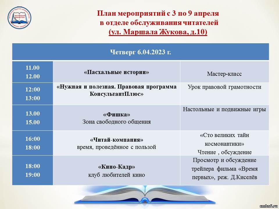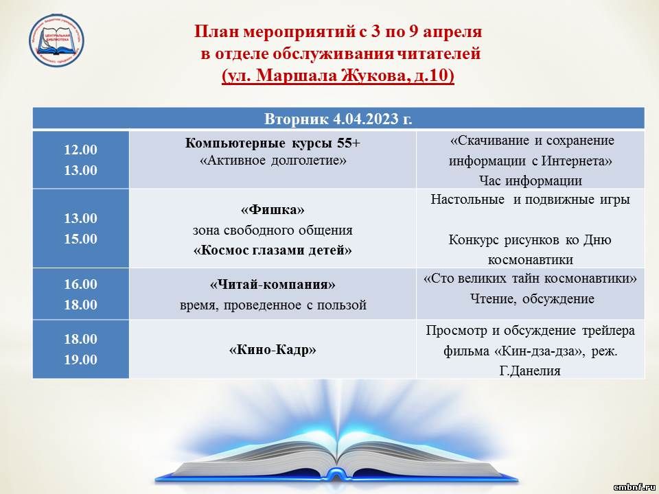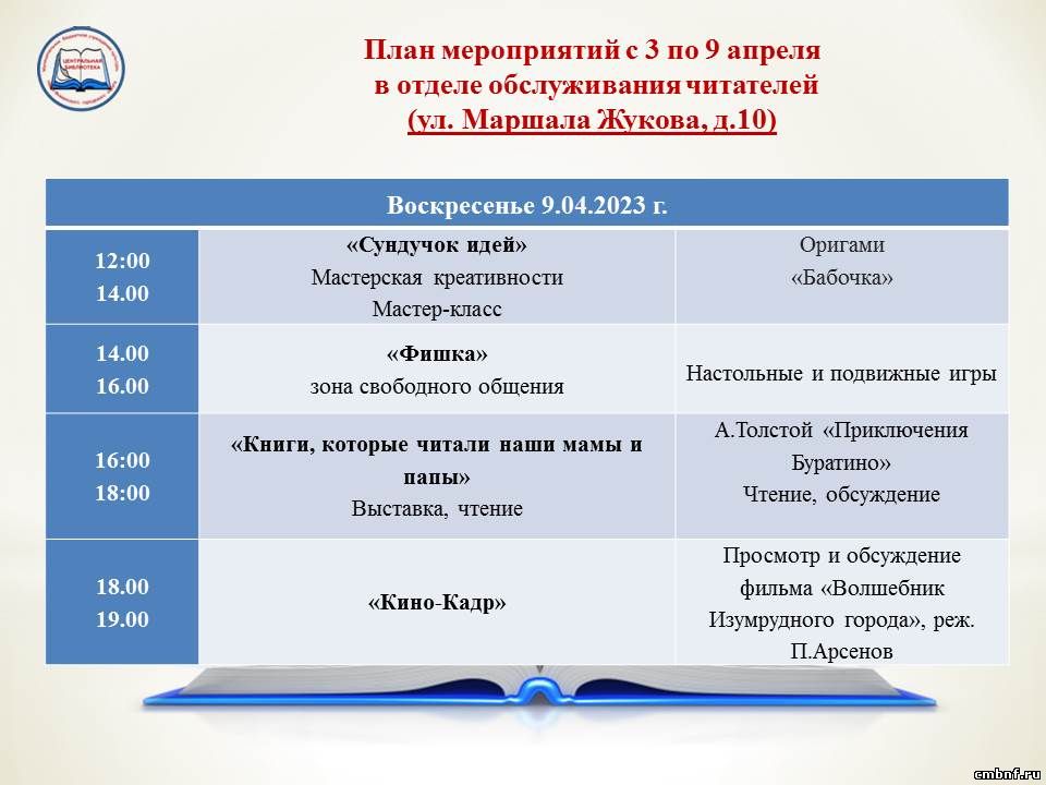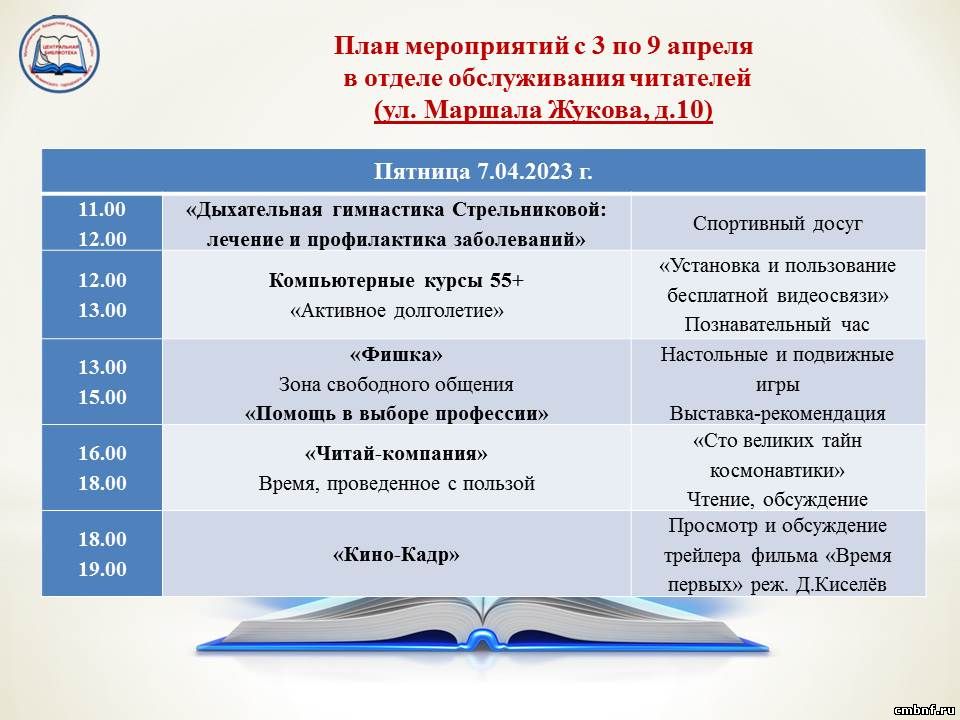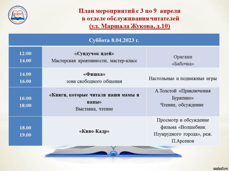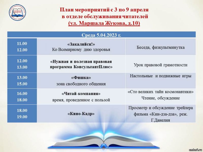 План мероприятий с 3 по 9 апреля