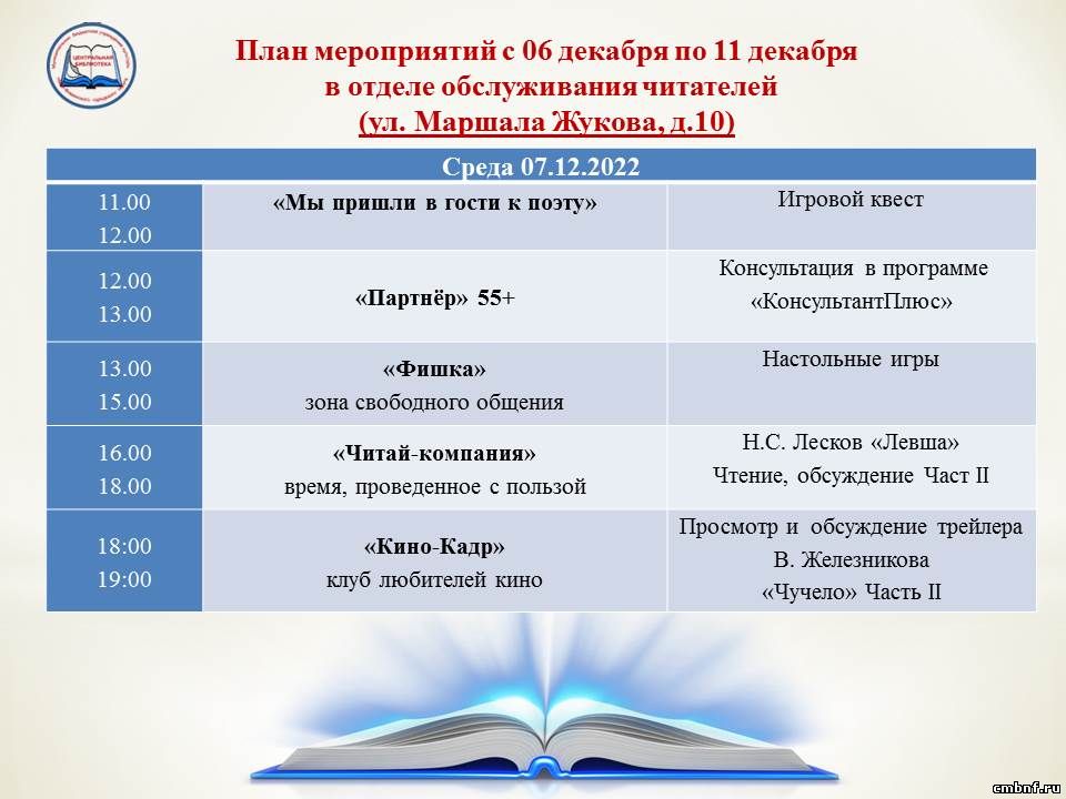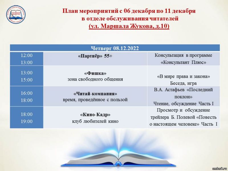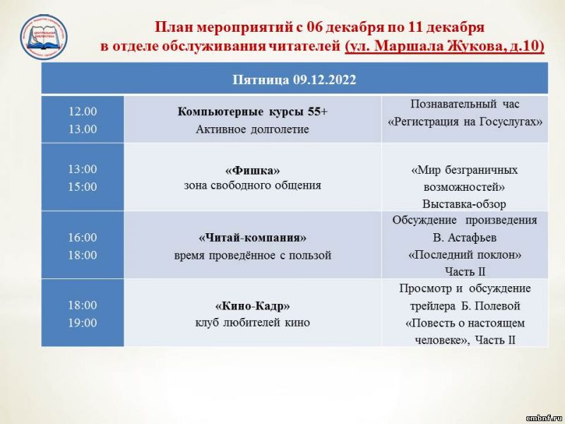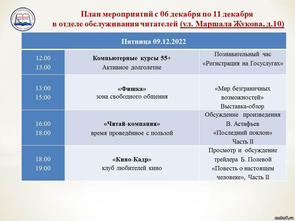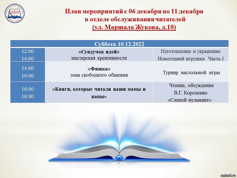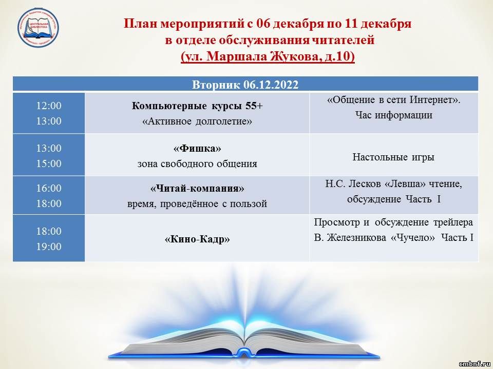 План мероприятий с 6 по 11 декабря