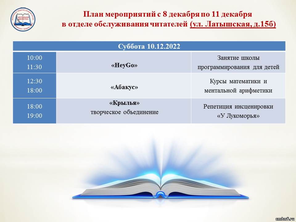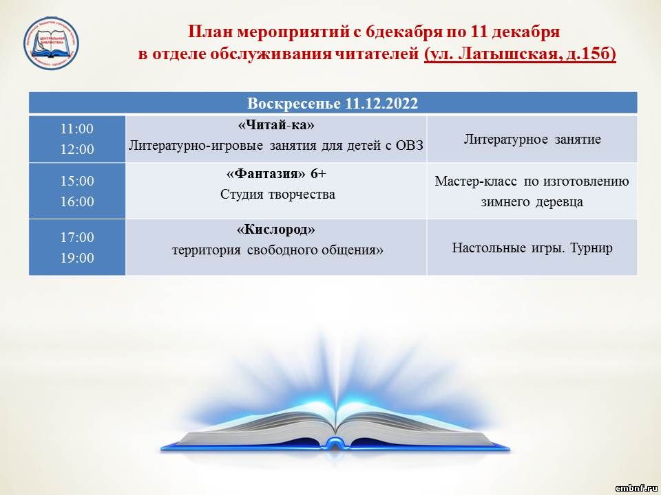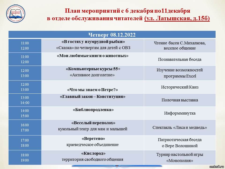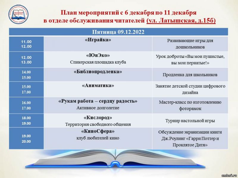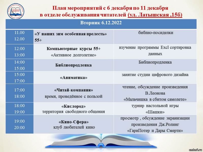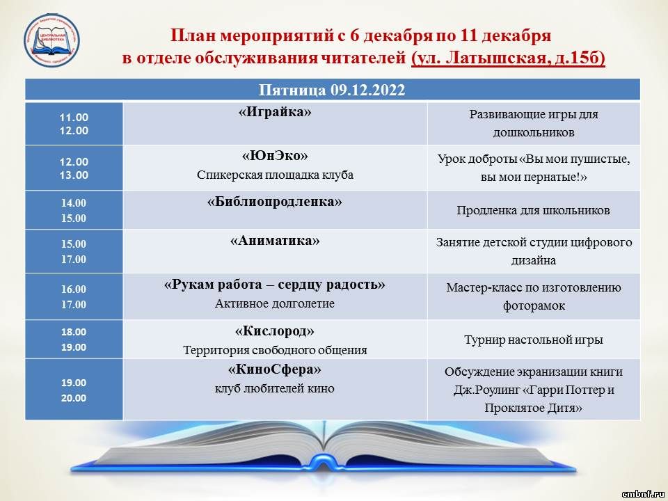 План мероприятий с 6 по 11 декабря