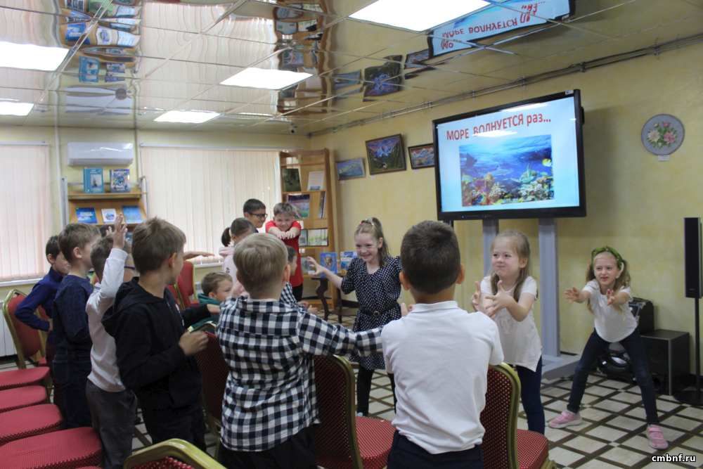 Дети услышали интересный рассказ об океанах и обитателях морских глубин, просмотрели увлекательную презентацию, отвечали на вопросы викторины, участвовали в конкурсах и играх морской тематики.