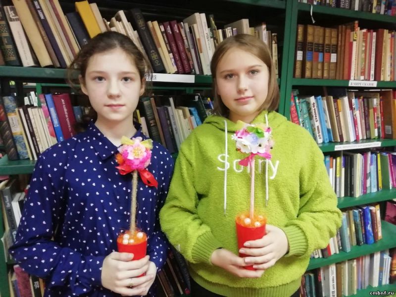 2 марта в сельском отделе обслуживания читателей в с. Каменское был проведен мастер-класс для детей «Подарок для мамы», посвященный Международному женскому дню 8 марта. Участники мастер-класса изготовили для мам подарки «Букеты из конфет».