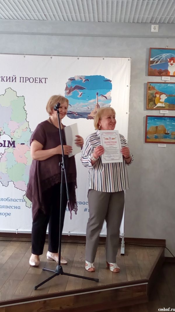 И вот, 24 мая состоялась церемония награждения лучших юных художников. В ЦДК «Звезда» были приглашены победители и участники, библиотекари поселений, организаторы конкурса. Награждение проводила председатель Московского областного отделения РОО «Межнациональный центр культуры и творчества «Женщины Крыма» Жанна Софинова. Почетными грамотами удостоены директор МБУК «ЦБ» Т.В. Сергина, зав. организационно-методическим отделом С.А. Горлова, библиотекарь отдела обслуживания читателей М.М. Цепкова, организовавшие конкурс рисунков среди библиотек Наро-Фоминского округа. И, конечно же, памятные подарки и дипломы получили наши читатели, представившие на конкурс удивительные по красоте работы.