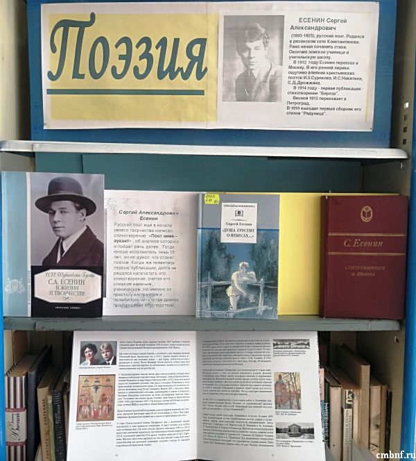 На выставке можно познакомиться с различными изданиями произведений поэта. Представлен материал о творчестве, публикации о жизни С.А. Есенина.