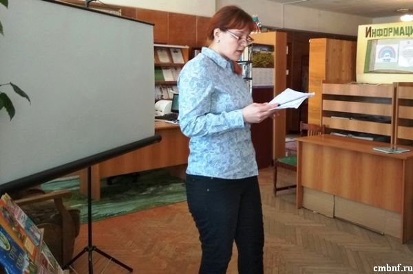 19 апреля отдел обслуживания читателей (ул. Маршала Жукова, д.10) посетили первоклассники школы № 1. Они пришли на встречу с замечательной детской писательницей Татьяной Сергеевной Пивоваровой, которая не только пишет прекрасные детские стихи, но и является жительницей нашего родного Наро-Фоминска. В зале ребят встречала Сказочница книжного царства (С.Ревина). Она рассказала детям о книгах, провела с ними интерактивную «Сказочную викторину». Потом заведующая отделом обслуживания читателей Л.Волынец предоставила слово Т.Пивоваровой.