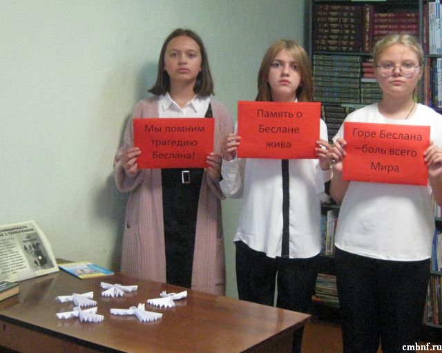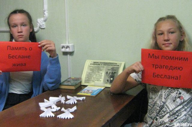В День солидарности в борьбе с терроризмом в библиотеке в д.Веселево прошел час памяти «Помнить, чтобы жизнь продолжалась. Трагедия Беслана». Дети узнали о хронике событий, о жестокости и бесчеловечности террористов, об отваге и мужестве спецназа, учителей и воспитателей. Ребята внимательно слушали и отвечали на вопросы: кто такие террористы и откуда они взялись. Участникам мероприятия было рассказано и о других террористических актах, которые произошли в нашей стране и за ее пределами. Затем ребята изготовили бумажных ангелочков, в память о тех, чье детство и жизнь оборвались в самый радостный школьный день – детей Беслана.