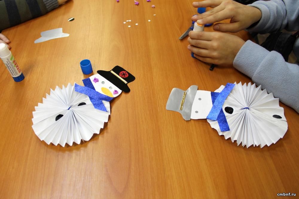 На занятии дети мастерили из разных видов бумаги снеговика. Снеговик - один из самых популярных символов зимы и новогодних праздников. Недаром его часто изображают на открытках, а в мультфильмах делают другом и помощником Деда Мороза.