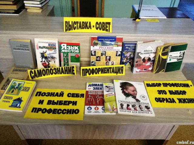 Библиотекарь Анастасия Тихонова оформила в помощь профориентации книжную выставку с литературой по психологии труда, для самопознания при будущем выборе профессии, также собраны периодические издания и книги о профессиях.