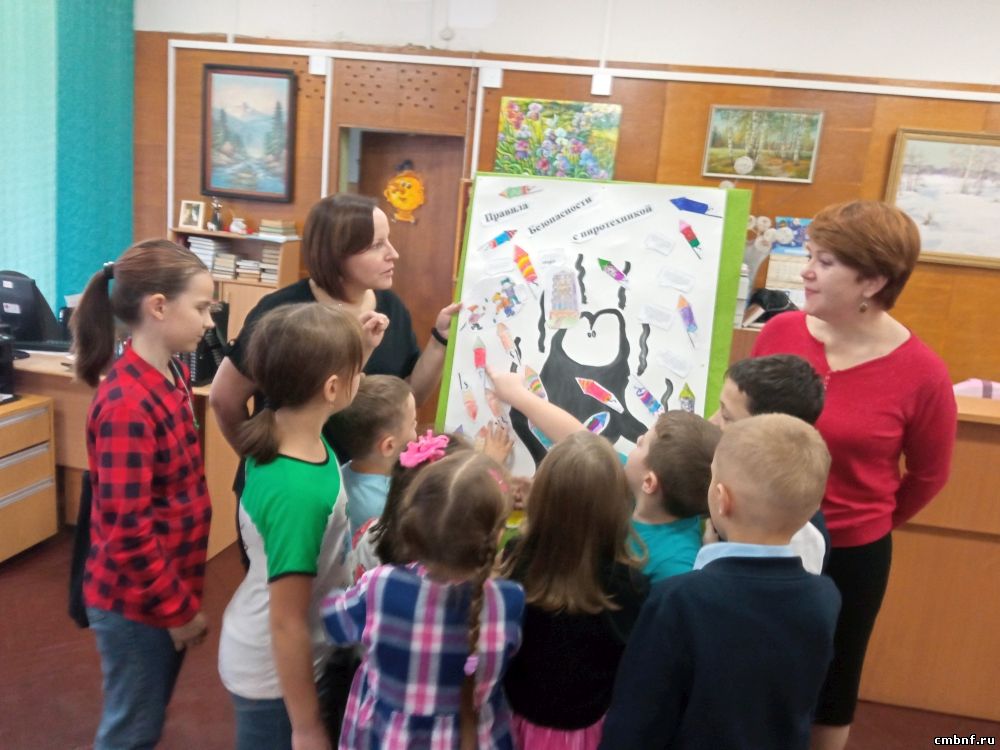 Отдел обслуживания читателей (ул. Маршала Жукова 10) посетили обучающиеся объединения «Учимся играя» (педагог Алымова Е. П.). Сотрудники библиотеки провели познавательную беседу на тему «Правила безопасности при обращении с пиротехникой».