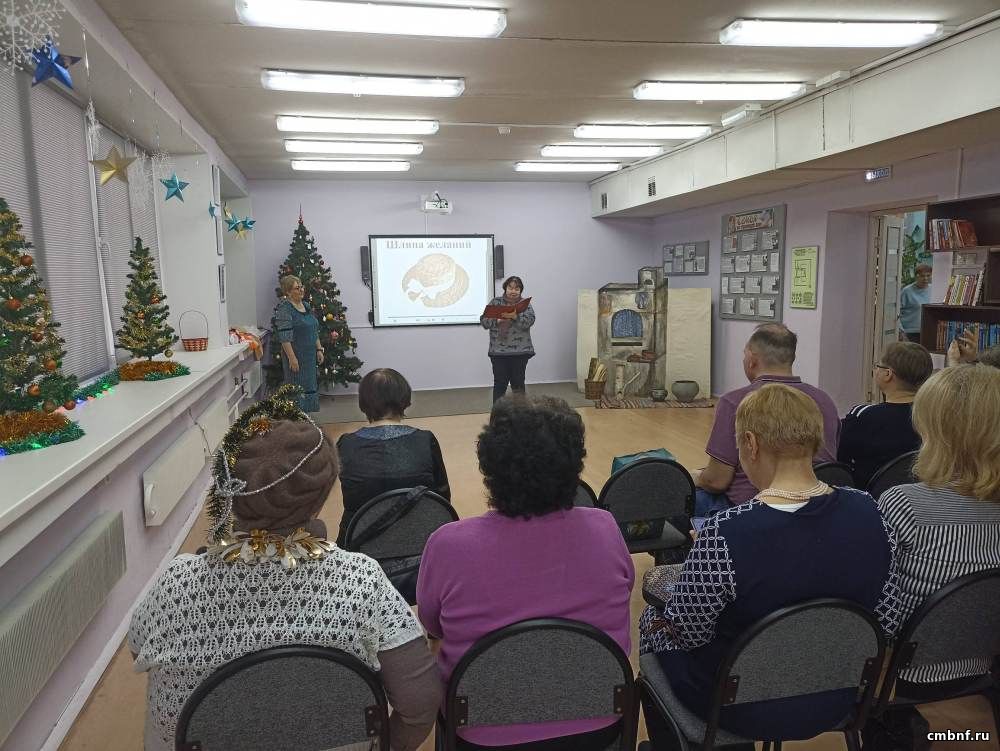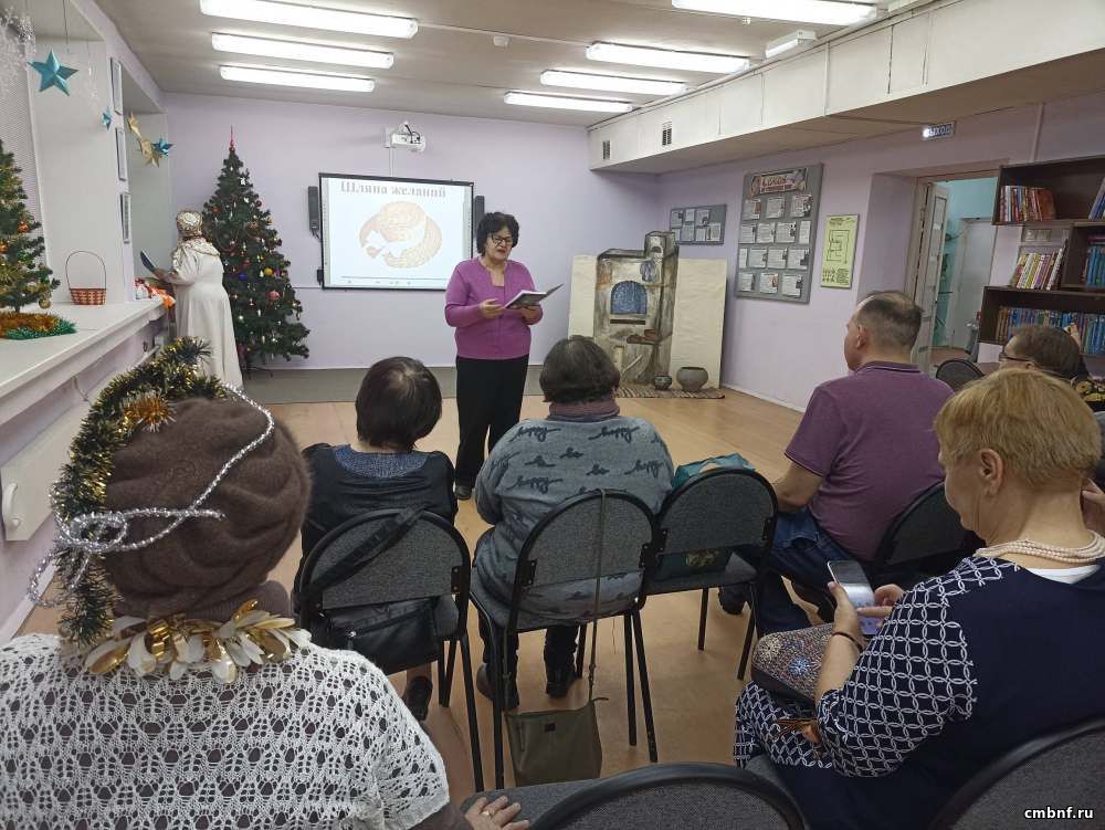 Ведущая встречи библиотекарь Светлана Ревина предложила гостям ответить на вопросы шуточной викторины, желающие пели новогодние песни и читали стихи.