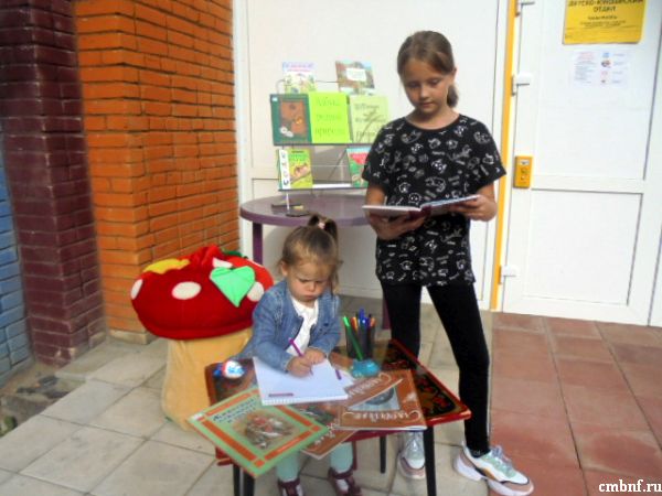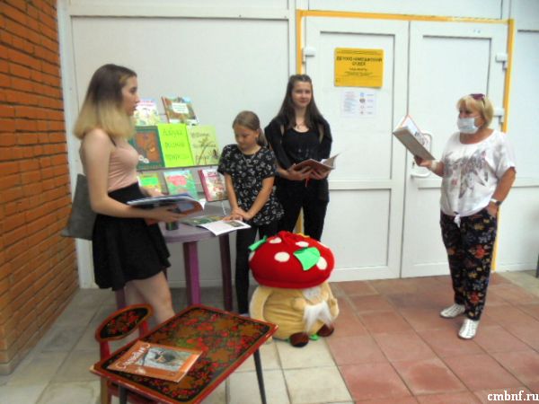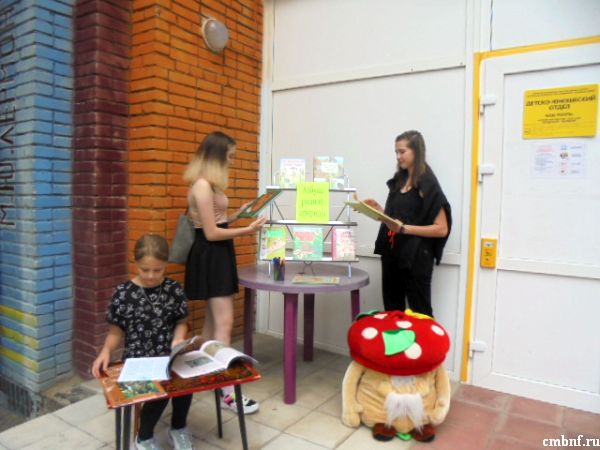 В рамках работы проекта «Читальный зал под открытым небом» на открытой площадке библиотеки на улице Латышская состоялось познавательно-развлекательное мероприятие–информина «Азбука родной природы». Целью мероприятия было информирование читателей о книгах и периодических изданиях, которыми располагает фонд библиотеки на тему «Природа родного края»