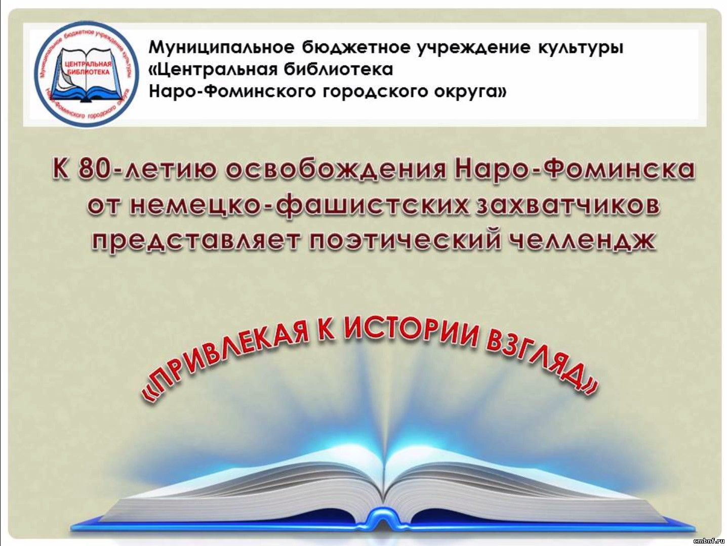 К 80-летию освобождения Наро-Фоминска читатели приходят в библиотеку, чтобы узнать больше о военной истории Наро-Фоминска, о том, как «наш город бастионом стал» и о пути «от речки Нары на Берлин». Читают книги, художественные и документальные, сборники стихов, слушают рассказы библиотекарей, рассматривают книжные выставки. Активные читатели библиотеки приняли участие в поэтическом челлендже «Привлекая к истории взгляд». Они читают стихотворение «Орденоносному Наро-Фоминску» участника войны, нашего земляка Анатолия Георгиевича Байкова из изданного библиотекой сборника «Бои идут под Нарою, бои идут за нас…».
