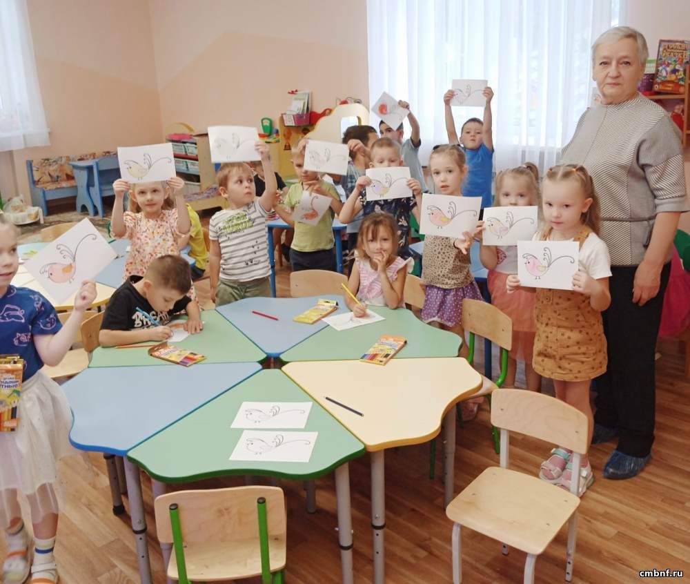 Библиотекарь Татьяна Цыганова познакомила ребят с книгами, которые можно взять в библиотеке, прочитала сказку В.Сутеева «Это что за птица?». Малыши с удовольствием и дружно отгадывали загадки и с творческим вдохновением раскрасили «портрет» птички-невелички.