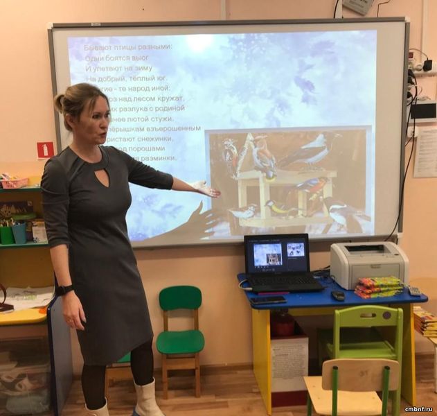 Библиотекарь Анна Борщева представила видеопрезентацию о птицах, зимующих в средней полосе России, дети дружно отвечали на вопросы, с интересом рассматривали картинки и рассказали, какие кормушки для птиц можно сделать своими руками.