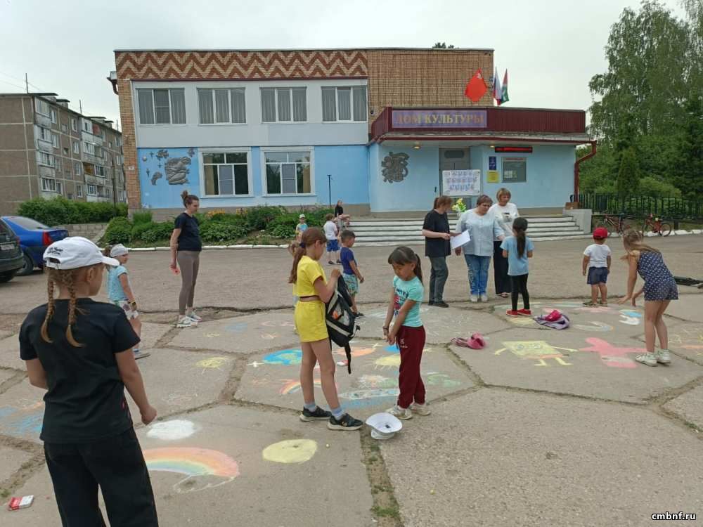В начале праздника дети активно приступили к конкурсу рисунка, они с большим энтузиазмом принялись за работу и через несколько минут вся площадь превратилась в яркие детские рисунки, на которых были изображены солнце и небо, радуга, цветы, дом, семья, земной шар.