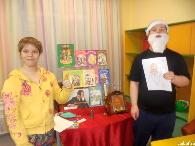 «Детьми он просто обожаем, зовут его все святым Николаем» - с таких слов началась встреча библиотекарей с ребятами социально-реабилитационного центра «Сказка». Николай Угодник, Чудотворец, Святой, Святитель. Как его еще называют? И какие подарки ждут дети? Великий Угодник Божий Николай прожил много лет. Множество чудес сотворил великий святой при жизни и после своей смерти. Угодник – потому что всем помогает, всем угождает. Никола зимний открывает череду новогодних праздников. Книжная выставка оформлена красочными изданиями на духовные темы, икона с изображением Николая Чудотворца, свечи, колокольчик.