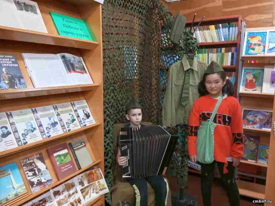 Сотрудники отдела обслуживания читателей (ул. Маршала Жукова, д.10) оформили выставку-инсталляцию «Радость Победы и горечь утраты».