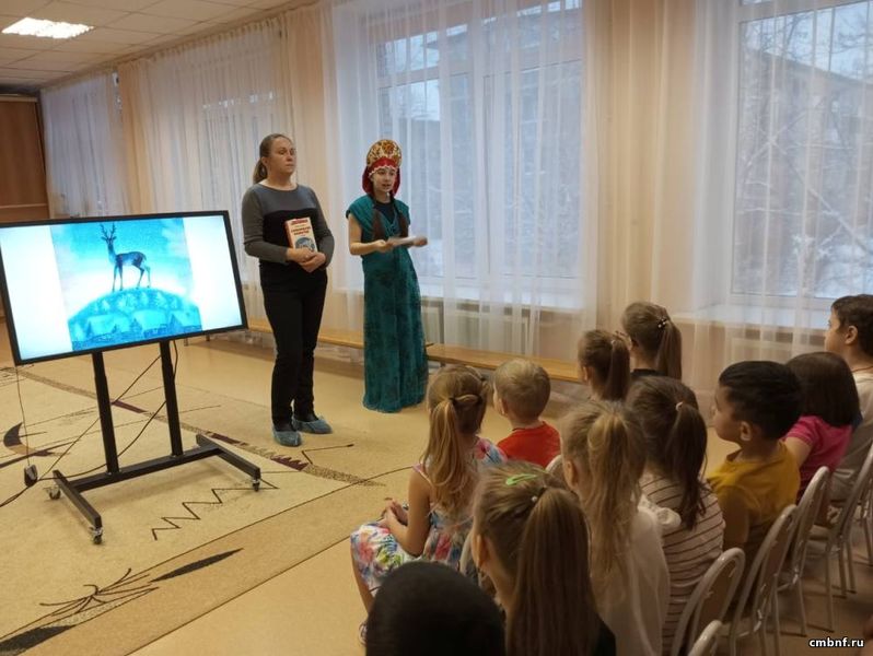 К ребятам в гости библиотекарь сельского отдела обслуживания читателей п.Васильчиново Ольга Овчинникова пришла не одна, а с одной из главных персонажей сказов Бажова - Хозяйкой Медной горы, которую сыграла постоянная читательница.