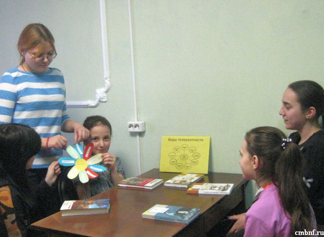 27 января в библиотеке д.Веселево прошла беседа о толерантности «Рразные люди: как они похожи!». В ходе беседы ребята обсуждали, что все люди разные, в чем-то они похожи, но различия есть обязательно. В каждом есть что-то свое интересное, симпатичное. В жизни человек общается с представителями различных национальностей, культур, религий, поэтому важно научиться уважать культуру как своего народа, так и представителей других национальностей. Затем дети сделали модель цветка, вписав в каждый его лепесток качества, которыми должен обладать толерантный человек. Завершилось мероприятие игровой программой, в процессе которой ребята назвали лучшие качества своих товарищей.