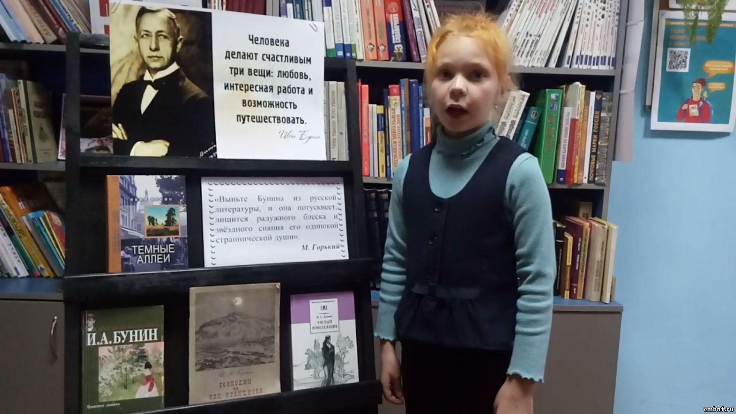 МБУК "Центральная библиотека" Наро-Фоминского г.о. (сельский отдел обслуживания читателей в п.Новая Ольховка) присоединяется к литературной эстафете «По волнам любимых строк И.А. Бунина». Потатурина Маргарита (Ново-Ольховская средняя школа, 2 класс) читает стихотворение «Речка»
