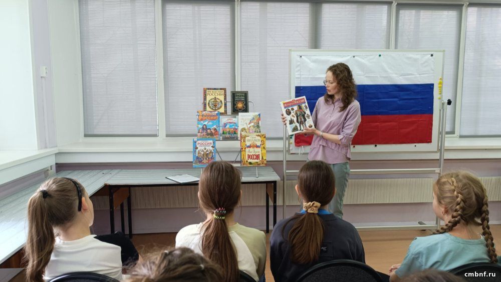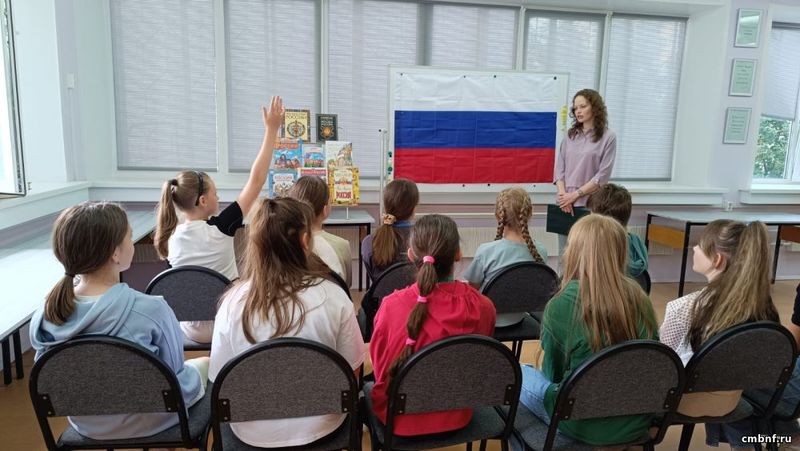 Библиотекарь рассказала историю возникновения и утверждения флага, почему цвета расположились именно так и что они символизируют. Ребята отвечали на вопросы познавательной викторины и вспоминали пословицы о Родине.