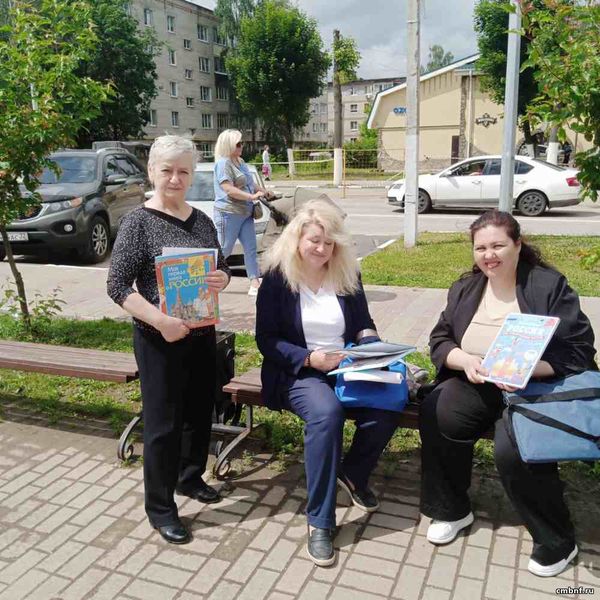 Прохожие с удовольствием и интересом отвечали на вопросы литературно-географической викторины, участвовали в беседе на тему истории России. Библиотекари Анна Борщева и Татьяна Цыганова рассказали о том, какие книги, посвящённые родной стране, есть в библиотеке.