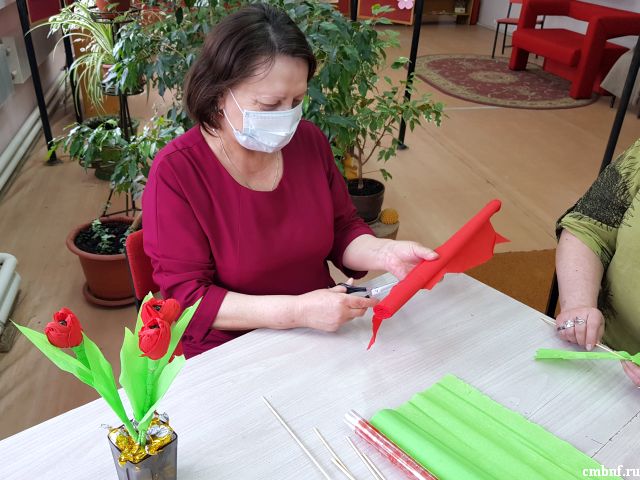 В отделе обслуживания читателей (ул. Латышская, 15б) прошло первое занятие клубного формирования «Рукам работа – сердцу радость» в рамках проекта «Активное долголетие в Подмосковье». Тема занятия «…Так хочется весны, так хочется тюльпанов». Библиотекарь Саломатина М.П. предложила участникам проявить творчество, создавая своими руками модный в наше время «Свит-дизайн». Если вы любите не только есть сладкое, но и творить, то вам очень подойдёт изготовление букетов из конфет и гофрированной бумаги. Такие композиции никогда не вянут, их можно дарить и женщинам, и мужчинам, и детям! Это увлечение принесёт вам немало удовольствия!