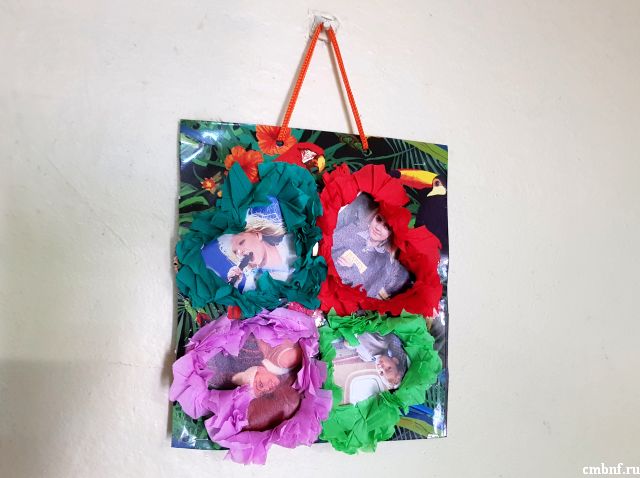 Участники клубного формирования "Рукам работа - сердцу радость" решили изготовить фоторамку из ненужного подарочного пакета.