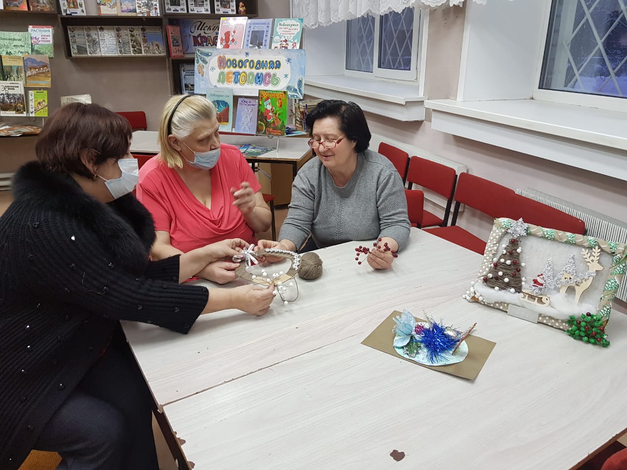 В отделе обслуживания читателей состоялось очередное занятие творческой мастерской «Рукам работа – сердцу радость» в рамках программы «Активное долголетие в Подмосковье». Как правило, рукодельницы могут сотворить шедевр из любых подручных материалов, ведь у них всегда найдутся мотки разноцветных ниток, ленты, стразы и бисер. Вот и в этот раз удалось из куска картона, ниток, лент и бусин за небольшой промежуток времени, всего за 40 минут, сделать симпатичную рамку для фотографий. В такую рамочку можно вставить новогоднее или просто зимнее фото. И оно станет прекрасным напоминанием о каком-либо приятном событии этой зимы.