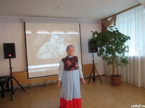 Её песни «Валенки», «Катюша», «На улице дождик» и другие знали и любили в нашей стране. Библиотекари рассказали присутствующим биографию и творческий путь певицы, показали документальный видеоролик «За что певицу Лидию Русланову отправили в ГУЛАГ». В зале звучали песни из репертуара Л.А. Руслановой в исполнении участников мероприятия.