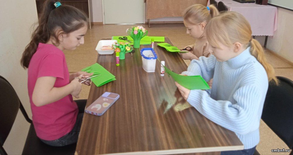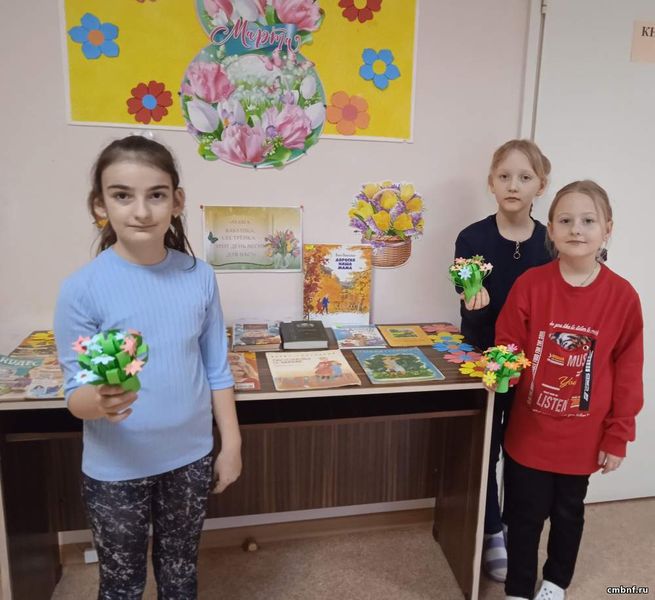 Библиотекарь Оксана Аксенова познакомила детей с историей праздника, рассказала о книгах, посвященных мамам, а затем с участниками творческого клуба «Мастерилка» был проведен мастер-класс «Сделаем сами и подарим маме».