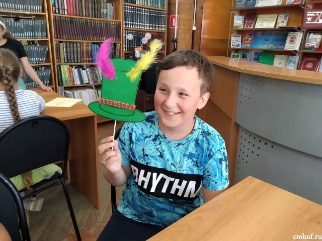 Читатели библиотеки (ул. Маршала Жукова, 10) отправились в захватывающее путешествие вместе с героями сказок Льюиса Кэрролла. Чеширский Кот (Колчина А.В.) и Белый Кролик (Никифорова Н.Б.) пригласили ребят в Страну Зазеркалья, где их ждали увлекательные приключения: ребусы от Кота, викторина от Кролика, игра «Верю - не верю» по фактам из биографии писателя. Чеширский Кот предложил ребятам почувствовать себя в стране Зазеркалье: соединить точки на листе бумаги, глядя в зеркало, а также прочитать зашифрованную фразу. А Кролик позвал участников игры в творческую мастерскую, где они изготавливали шляпки. В завершение всех ждало Чаепитие.