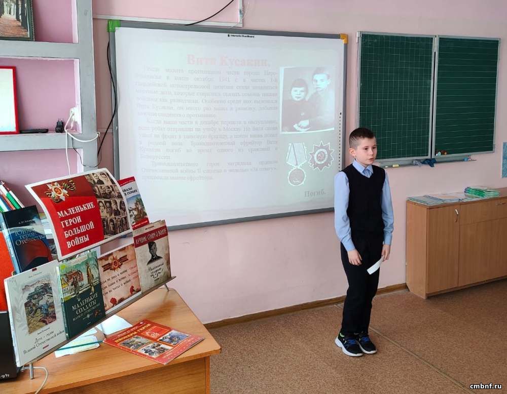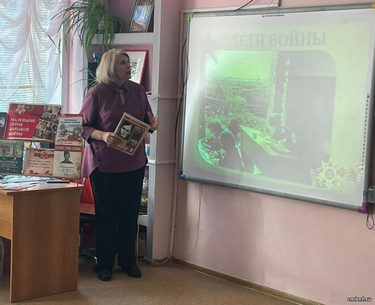 Библиотекарь Лариса Перчина познакомила ребят с историей этого памятного дня, рассказала о детях, ровесниках присутствующих на мероприятии школьников, которые сражались в годы Великой Отечественной войны наравне со взрослыми, защищая свою Родину от фашистских захватчиков. Рассказ сопровождался презентацией «Дети войны» и обзором книг библиотечной выставки «Маленькие герои большой войны».