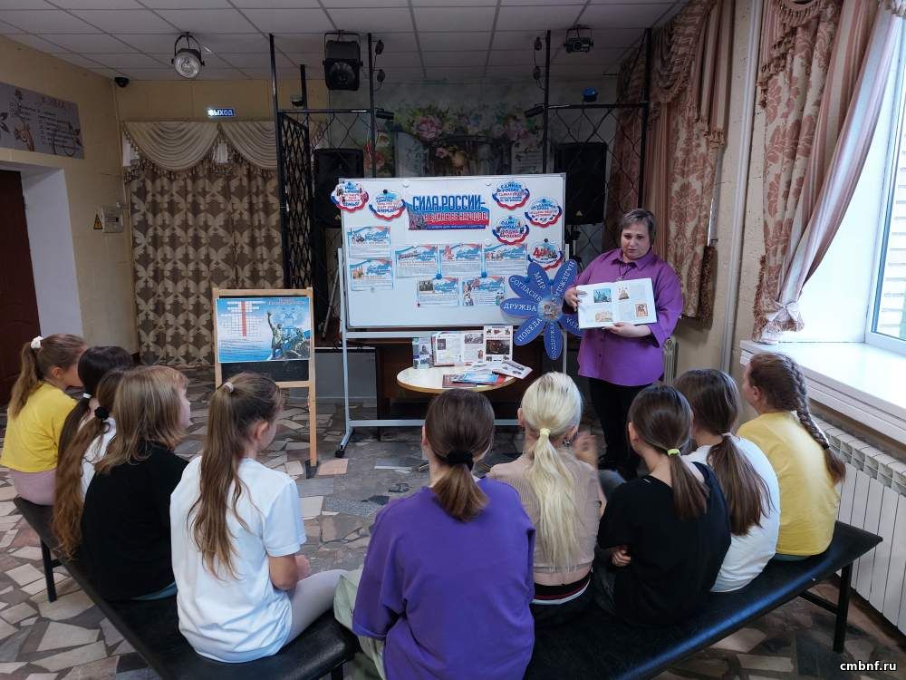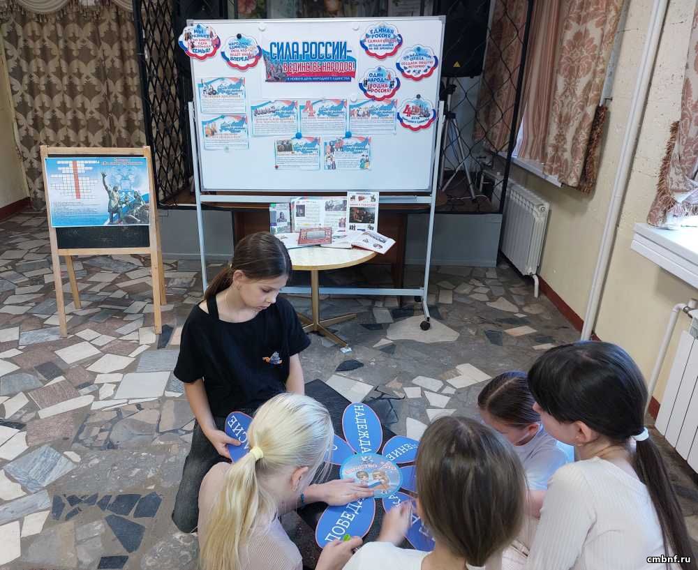 Библиотекарь Наталья Вечкаева рассказала ребятам об истории возникновения праздника, его национальной значимости и познакомила с именами героев Смутного времени – Кузьмой Мининым и Дмитрием Пожарским.