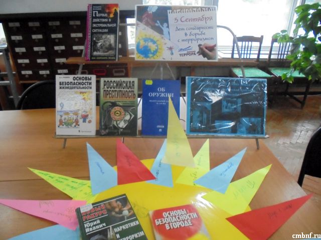 В отделе обслуживания читателей Центральной библиотеки (ул. Маршала Жукова д. 10) прошел Урок мира в День солидарности в борьбе с терроризмом. Читатели библиотеки прослушали сообщение библиотекаря Устиновой С.Н. о трагических событиях, произошедших 1 сентября 2004 года в г. Беслане Северной Осетии, для всей России этот день стал днем общенациональной скорби. Долго мы еще будем скорбеть по погибшим. Скорбят все. Все, кто может назвать себя « Человек».