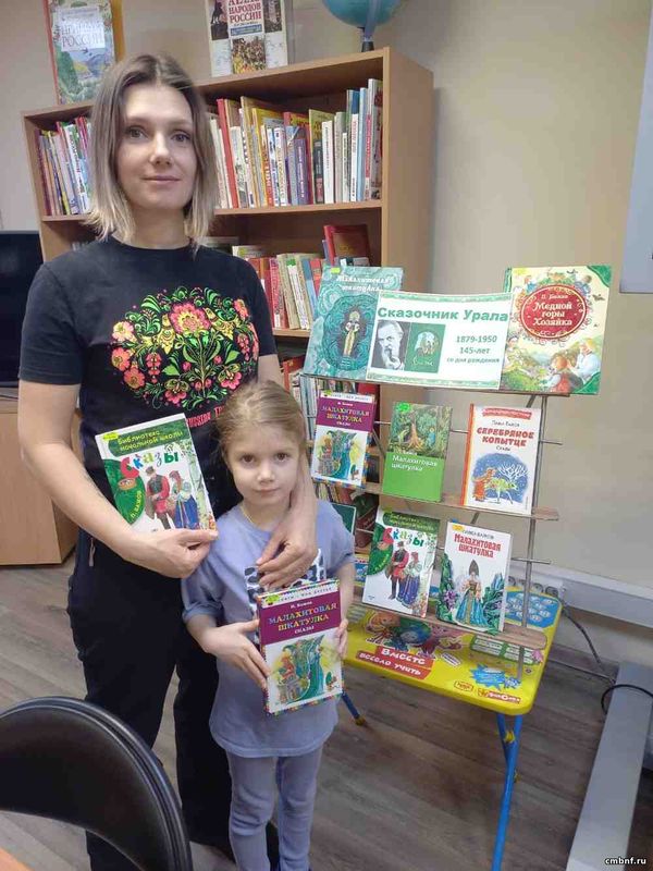 На выставке представлены сборники «Малахитовая шкатулка», «Серебряное копытце», «Голубая змейка», «Медной горы хозяйка».. Юные читатели с удовольствием познакомились с творчеством Бажова и его самобытными сказами.