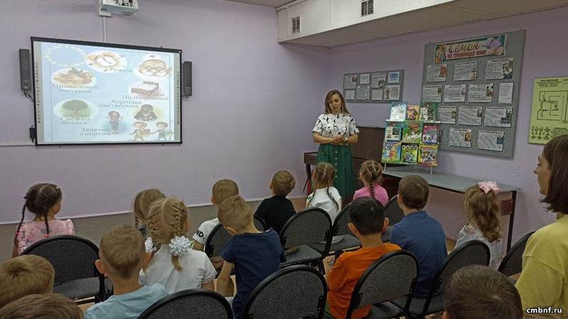 Галина Антонова рассказала ребятам, что занятия физической культурой и спортом дают человеку уверенность в себе, ощущение бодрости, красоты. Дети разгадали загадки о разных видах спорта, вспомнили пословицы и поговорки о здоровье, а также поговорили о пользе утренней зарядки и физических упражнений, познакомились с художественными книгами о спорте.