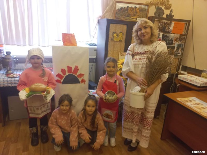 Библиотекарь Елена Путилова познакомила детей с историей хлеба, рассказала, какие праздники устраивались в честь хлеба.