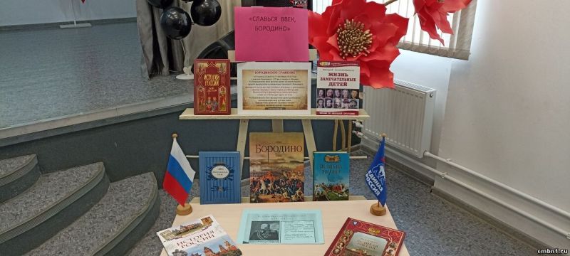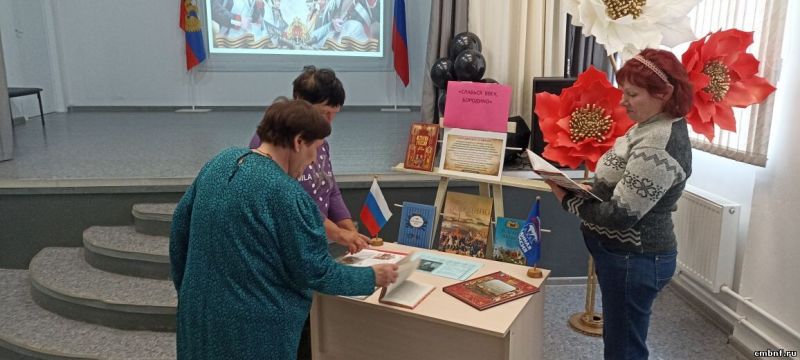 6 сентября библиотекарь Сажина О.И. (д.Устье) совместно с сотрудниками дома культуры провели мероприятие в актовом зале Татищевской средней школы «Славься ввек, Бородино!». На мероприятии присутствующие посмотрели презентацию «Славься, день Бородина». Из фильма ребята узнали о том, что М.И. Кутузов назвал Бородинскую битву «вечным памятником мужества и отличной храбрости российских воинов», а также о том, что на Бородинском поле состоялось генеральное сражение Отечественной войны 1812 года, которое положило начало разгрома армии Наполеона. Ребята познакомились с героями Отечественной войны, узнали интересные факты, имевшие место в сражении.