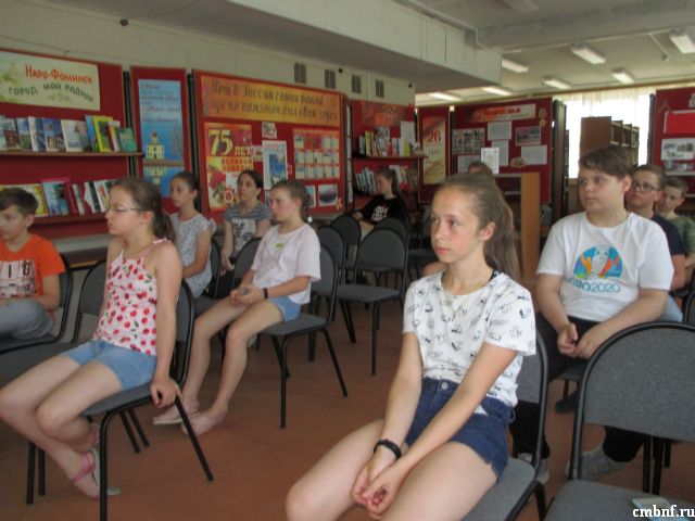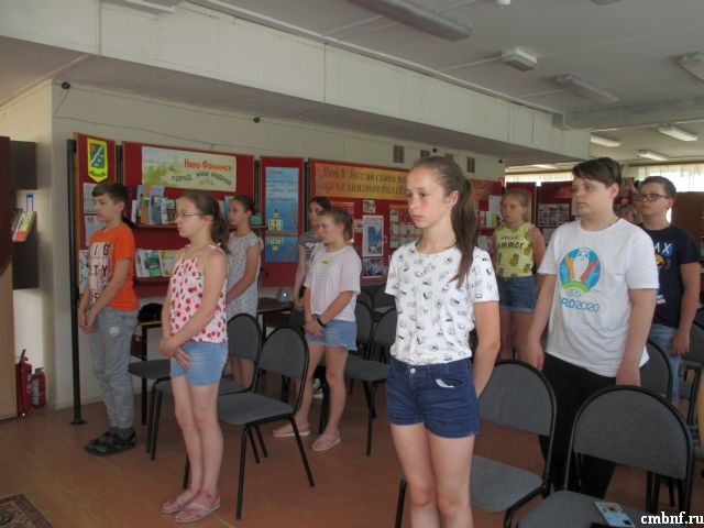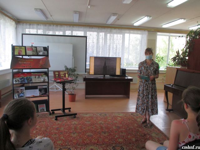 Библиотекарь Терешкова Е.Н. рассказала ребятам, посещающим летний лагерь средней школы № 5 о первых часах Великой Отечественной войны - первых часах того памятного 1941года. Страна ещё спала мирным сном, когда первыми в бой с врагом вступили советские пограничники. Ребята совершили видеоэкскурсию в «Мемориальный комплекс «Брестская крепость-герой», узнали историю жизни последнего защитника крепости майора Пётра Михайловича Гаврилова, пленённого немцами на 32-й день войны. Приняли участие в викторине, посвященной основным событиям Великой Отечественной, а также почтили память погибших советских людей Минутой молчания.