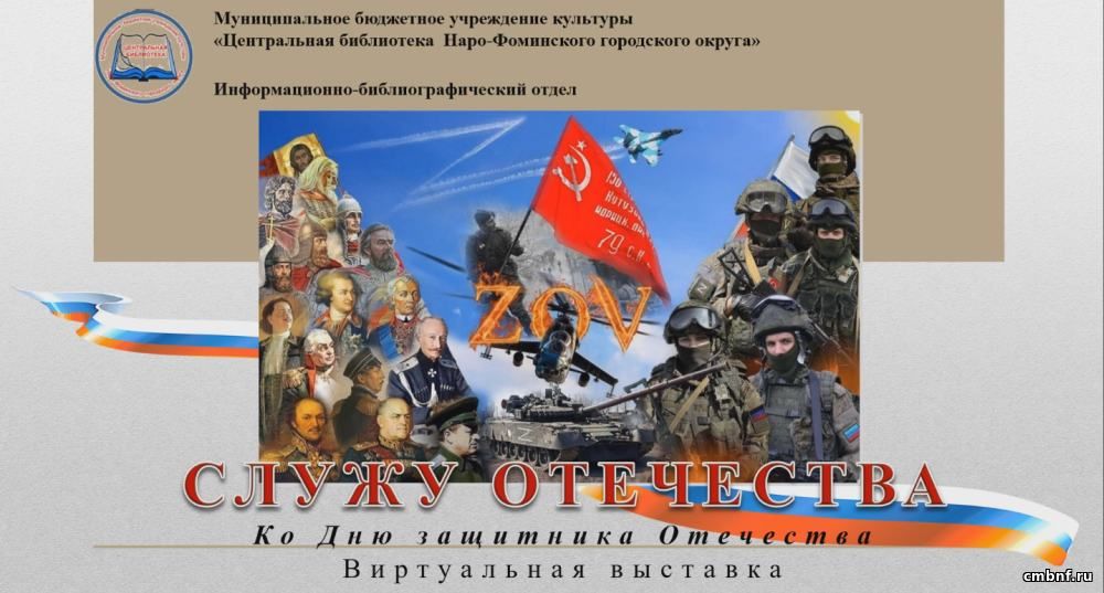 Ко Дню защитника Отечества библиографом информационно-библиографического отдела Ириной Анатольевной Лукьяновой подготовлена виртуальная выставка «Служу Отечеству».