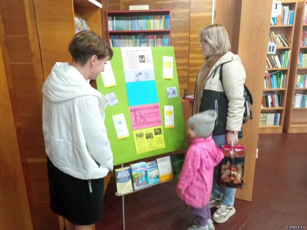 Сотрудниками отдела обслуживания читателей (ул. Маршала Жукова, 10) оформили информационный стенд, содержащий контактную информацию о центрах, оказывающих медицинскую и правовую помощь, об учреждениях, реализующих социальные программы и досуг людей с ограниченными возможностями.
