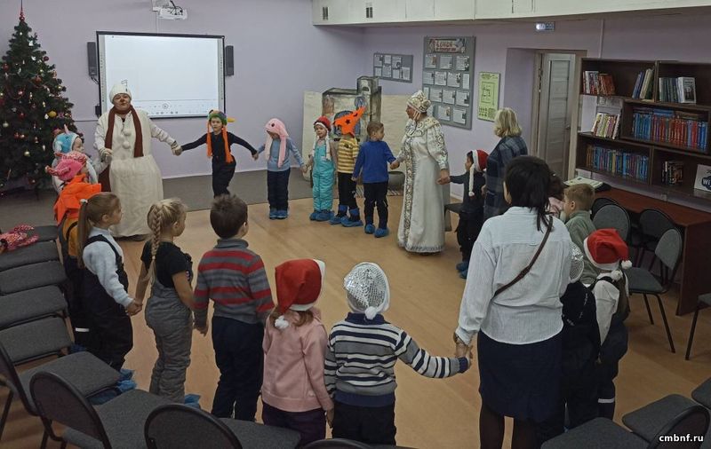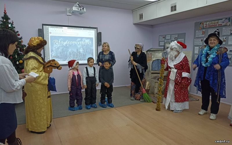 В читальном зале встретились разные поколения читателей. Детям была показана новогодняя сказка «Раз морозною зимой», которую подготовили их бабушки и мамы.