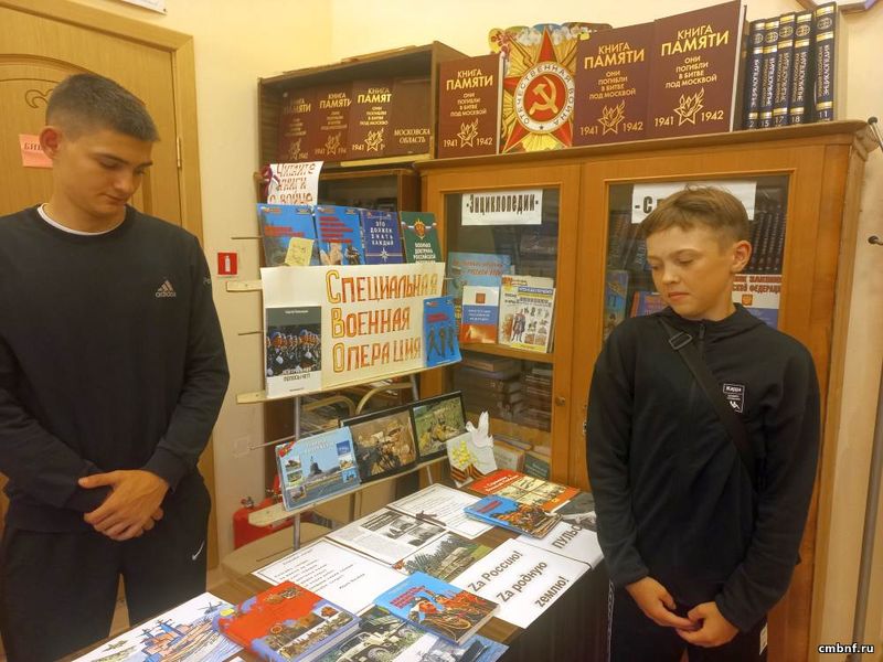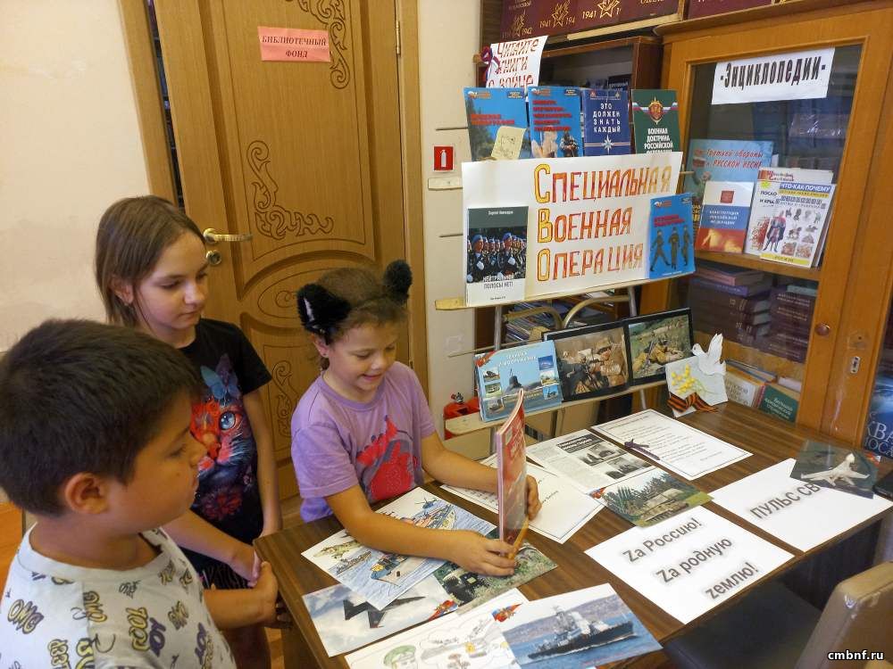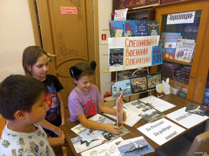 В сельском отделе обслуживания читателей пос. Архангельский оформлена тематическая выставка «Специальная военная операция», где читатели могут познакомиться с информацией о присоединении Крыма к России, о Минских соглашениях 2014 года, о положении жителей Луганской и Донецкой областей с момента принятия соглашения до начала специальной военной операции, причинах проведения СВО, о земляках-участниках СВО.