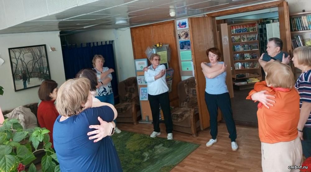 Библиотекари отдела обслуживания читателей (ул. Маршала Жукова 10) рассказали новым участникам группы здоровья о пользе дыхательной системы Стрельниковой.