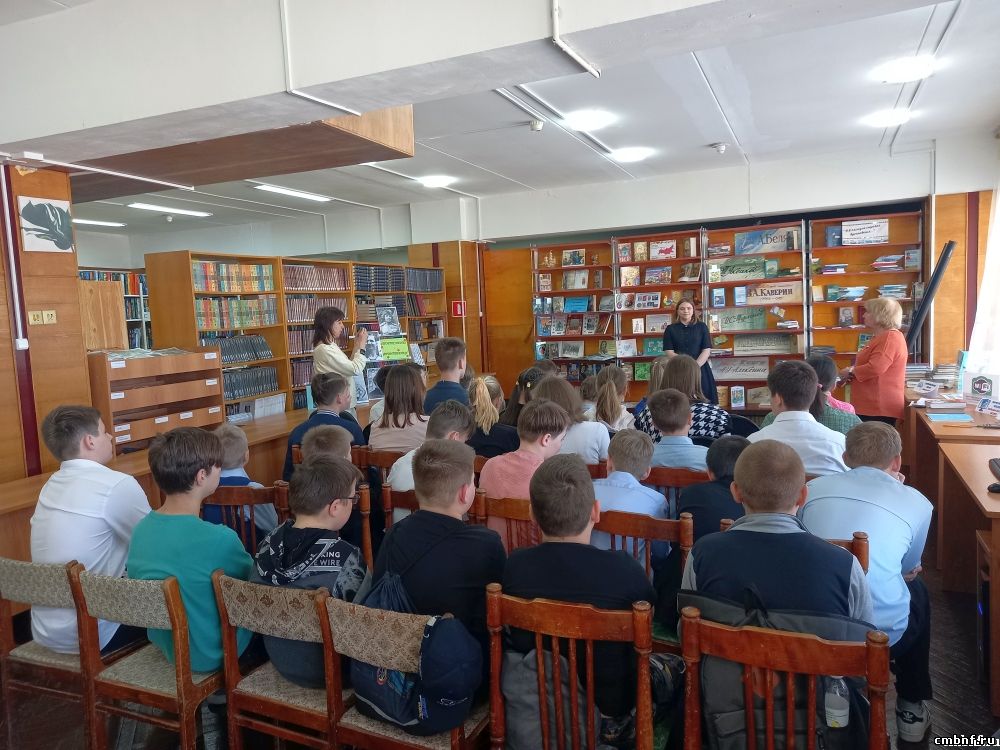 Библиотекарь Цепкова М.М. (отдел обслуживания читателей ул. Маршала Жукова 10) провела беседу с ребятами из спортивной школы г. Наро-Фоминска, команда гандболистов, на тему «Спортсмены - фронтовики». Гости узнали много интересного о таких спортсменах, как Иван Удодов, Виктор Чукарин, Любовь Кулакова, Нина Парфёнова и других.
