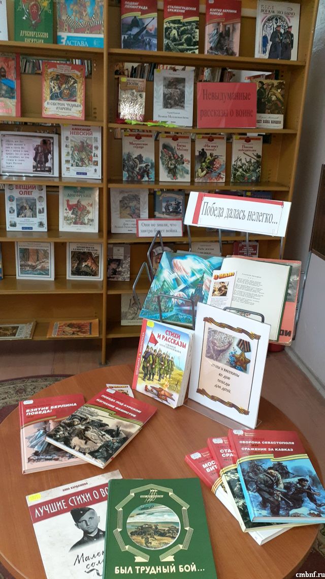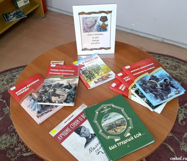 В отделе обслуживания читателей (Латышская,15Б) ко Дню Победы была оформлена тематическая выставка «Стихи и рассказы о войне для детей». На выставке представлены произведения многих русских писателей и поэтов, посвященные событиям Великой Отечественной войны. В их рассказах, стихах и поэмах – истории о детях, бойцах, матерях – обо всех тех, кого не обошла стороной страшная война. Ребята с интересом знакомились с произведениями литературы в библиотеке и брали книги домой.